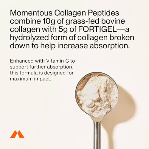 Momentous Grass-Fed Collagen Peptides Powder - Collagen Protein Powder with Fortigel & Vitamin C for Hair, Skin, Nails, & Joint Health Support - NSF Certified for Sport - Packaging May Vary