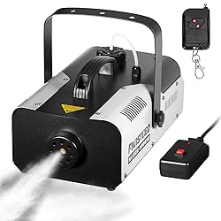 【1000 Watt Fogger】1000W power, only need to warm up for 3-4 minutes, it will spray 9-16 feet of smoke for 30-50 seconds each time, produce about 5000 CFM (cubic feet per minute) of non-toxic fog, quickly make a room of 200 square feet smoky and enhance the lights show 【Manual Control & One Key Lock】Equipped with a wired manual control which has one key lock function. Press the red button on the controller, when the machine preheating is complete, it can automatically spray 【Wireless Remote Control】Equipped with a wireless remote control, can control the fog machine within 165 feet 【Portable Fog Machines】Equipped with multiple temperature controllers, safe, reliable, durable, compact, light weight and portable 【Widely Used】Professional fog machine emits thick bursts of fog to enhance any light show, perfect for DJ, stage, parties, wedding, Halloween, Christmas