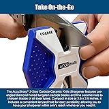 AccuSharp Pull Through Knife Sharpener Keychain, 2-Stage Sharpener for Straight or Serrated Kitchen Knives, Handheld Tool for Fishing & Hunting, White/Blue