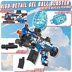 🔫【Electric Gel Ball Blaster】The High speed Automatic Splatter Ball Blaster with exquisite exterior paint is designed for Shooting, which is full of fighting spirit! It is Made of high quality ABS, durable synthetic design and Nylon composite body, able to sustain intense battles and meet your entertainment needs for hours. ⛑【Safe and 】The Gel ball blasters is safe, non-toxic, non-staining and can be rehydrated. When the gel ball blaster are ejected, they will be broken immediately after encountering obstacles and they will disappear completely when dry. They do not stain their clothes and will not cause harm to people or objects. we also have a safety switch design and a gift of safety goggles to provide users with adequate protection measures. 🔫 [2 Electric Automatic modes] JIFTOK splatter ball blaster toy has 2 high-performance ways - Semi-automatic and automatic modes. ⚡【Super high speed burst】Amazing shooting speed up to 400~600 rounds per minute, stability, smoother and more durable! 2024 Newest upgraded gearbox of the gel ball blaster provide powerful shooting motor than other Splatter ball blaster, powerful shooting ability can achieve continuous firing without jamming. 🔋【Longer Life Rechargeable battery support 】 It can provide continuous and stable long battery life for your shooting battle. The JIFTOK Gel Ball Blaster is powered by a 7.4V 600mAh battery. It only need to charge 34 hours then can be shoot about 1500 to 2000 rounds continuously. The battery is rechargeable with the cable we provide.