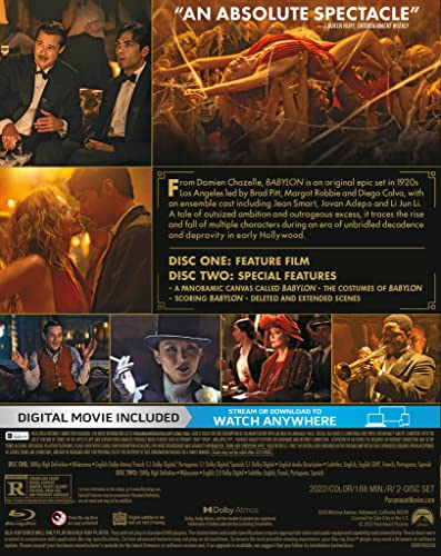 From Damien Chazelle, BABYLON is an original epic set in 1920s Los Angeles led by Brad Pitt, Margot Robbie and Diego Calva, with an ensemble cast including Jovan Adepo, Li Jun Li and Jean Smart. A tale of outsized ambition and outrageous excess, it traces the rise and fall of multiple characters during an era of unbridled decadence and depravity in early Hollywood.