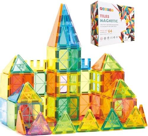 Magnetic Building Tiles for Kids,64 PCS Educational Magnetic Stacking Blocks for Boys Girls, Magnets Construction Toys,Stem Preschool Kindergarten Learning Toys