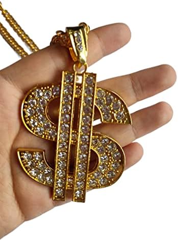 Rhinestone Gold Plated Dollar Sign Necklace Chain, Bling Hip Hop Money Dollar Necklace Pendant for Women Men Punk Style Jewelry