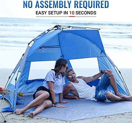 - 👍【10s EASY POPUP & PORTABLE】This pop up beach tent sun shelter has an automatic hydraulic pop up mechanism, makes it fast and easy to set up, no assembly required. Beach tent weight 7.2 lbs, packs down to 33" x 5" for easy carrying and storage.
