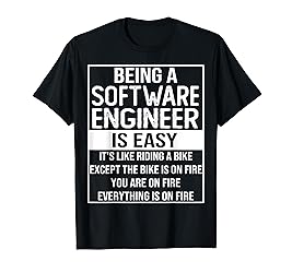 Funny software engineer design for software engineer your mom, men, women, dad, family, software engineering lover, colleague, and friend in christmas, mothers day, software engineers day, fathers day or birthday. Funny software engineer design saying and quote being a software engineer is easy it s like riding a bike Except the bike is on fire you are on fire everything is on fire Lightweight, Classic fit, Double-needle sleeve and bottom hem