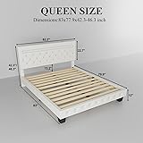 Benevika Queen Size Bed Frame with LED Lights, Upholstered Platform Bed Frame, Adjustable Headboard with Charging Station, Wooden Slats Support, Easy Assembly, No Box Spring Needed, White