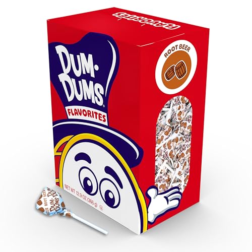Dum Dums Root Beer Lollipops, made by Spangler Candy, are now available as single flavors so you can stock up on your favorite candy lollipops without having to sort through a bulk candy mix. Get that nostalgic taste from your pops, whether you're looking for a classic 80s candy tang or vintage American flavors from the past. Each large bag of candy is resealable and contains about 50 bulk lollipops individually wrapped and easy to open - perfect for sharing at the office, as candy party favors for kids, valentines day lollipops, bulk candy for classroom celebrations, and Halloween pass-outs. These sweet treats provide a small bit of sugar, allowing even strict dieters to indulge without the guilt. An American candy icon since 1924, Spangler Candy Dum Dums are gluten-free, OU kosher certified, and free of the top common allergens. Our Root Beer Dum Dums are a flavor favorite that comes in individual big candy bags with suckers individually wrapped with their flavor printed on the wrapper.