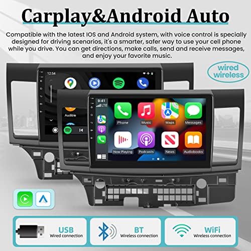 - 【Wireless Carplay and Android Auto】The car radio for Mitsubishi Lancer is compatible with iOS Carplay and Android Auto (Wired/Wireless Connection), allowing you to make a connection with your smart phone to access map navigation, phone contacts, email, notification, music, and more while you stay focused on the road.