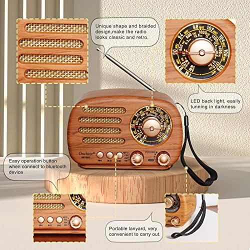 - ♫【Classic Retro Design】: With cute and classtic retro appearance design, this retro radio speaker can be placed in anywhere in your home as nice retro decoration. Small size and the bluetooth radio is portable with a handing cord. Turning on the radio, it seems bring you back to the old time.