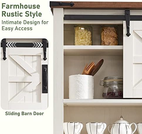 - [FARMHOUSE RUSTIC STYLE] Made of a blend of sturdy engineered wood with weathered natural wood grain for an abundance of classic farmhouse aesthetic. The sliding barn door with smooth railing tracks could not only ensure the simple pulling conveniently, but also as an eye-catching focal point in your home