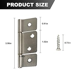 PACKING SPECIFICATIONS:Non mortise hinges 6x silver door hinges with mounting screws, easy to install. PRODUCT SIZE:Cabinet hinges Middle Leaf 1.51 inches,Top and Bottom Leaf 0.91 inches,Total length 3.46 inches,Screw 0.74 inches. TOP MATERIAL:Cabinet door hinges no slot made of high quality metal, strong and durable, the electroplated surface is rust and corrosion resistant. PRODUCT FEATURES:Three-piece hinge smooth sliding bearing hinge can rotate 360°, and not easy to jam or stagnate. USED FOR PRODUCTS:Mortise cabinet hinges suitable for doors, cabinets, windows, wooden boxes, cupboard, dresser etc.