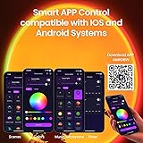 【Endless Color RGB Sunset Lamps】 - This upgraded sunset projection lamp features high-refraction lenses , farther distance ,wider light-emitting surface,and a larger projection range. Choose from over 21 colors and 4 dynamic modes via a switch button or the app, meeting the different lighting needs of users in various scenes. 【Smart APP Control Sunset Light】 - This magical sunset lamp projector perfectly integrates art and technology, freeing you from being limited to fixed color modes. Control the sunset projector lamp through the app for access to advanced modes such as unlimited RGB color options, dynamic modes, music, microphone, and timer modes, etc. With just one operation, a visual feast of lights will be displayed before your eyes. 【Bring the Sunset into Your Home】 - This LED sunlight lamp brings the breathtaking beauty of a sunset into your home, so you don't have to travel to a mountaintop or the beach to enjoy its stunning views.This multicolored rainbow lamp creates a relaxing atmosphere for you and your loved ones any time. 【Portable and Flexible Design】 - Compact and portable,plug-and-play sun lamp comes with an adjustable tripod and can be easily taken on the go. The size of the projected image can be adjusted by changing the distance from the wall, and the sunlight head can rotate 360 degrees for creative expression on walls, ceilings, and floors. 【Multifunctional Use】 - The color-changing sun light projector is ideal for room decor, enhancing any space for photography, parties, TikTok, or live streaming,music videos,etc.. Perfect as a bedroom lamp or living room lamp, it creates a cozy atmosphere for dates and gatherings.It's a favorite among internet celebrities and makes a great gift for Christmas,Thanksgiving,and birthdays,etc.. Perfect for lamps for living room and LED lights for bedroom!