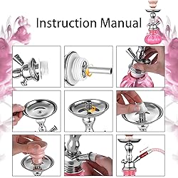 HOOKAH SET: Our hookah comes with pumpkin shape bottom glass base, center shaft, stainless steel charcoal tray, ceramic hookah bowl, upgraded hookah hose(s), tongs and rubber seals. EASY TO USE: Modern and stylish design make the hookah set easy to assemble and disassemble, the hookah can be cleaned easily to ensure different shisha flavor, easy to store making it the perfect hookah to enjoy at home and portable to carry around. STURDY & FUNCTIONAL: The hookah size is 11" tall, 3.9" pumpkin shape base, 37" hookah hose, high-quality materials to enhance each part of our hookah to provide you the smooth and flavorful experience. BUILT-IN BALL BEARING AIR PLUGS: Hose valves automatically stay closed when it's not in use.v PERFECT FOR ALL: The hookah works just as well as the larger ones and suitable for new and seasoned hookah lovers, a perfect gift for you and your friends.