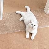【MULTI-SIZE SUITABILITY】Measures 43.3” L x 14.96” W, fits 27 1/2"-35 15/16" doors (in width). Please be sure to measure the width of the door before purchasing. 【WIDENED DESIGN】We have widened the carpet protector, so you can cut it into any shape you want, or cut it into single-sided or double-sided wings to satisfy your needs. 【PROTECT YOUR CARPET FROM SCRATCHING】Made of durable & recyclable PVC plastic with 0.07in (1.8mm) thickness, effectively stopping cats from scratching and protecting the carpet well. 【NON-SLIP CARPET PROTECTOR】Textured surface prevents against accidental slipping, while the rugged backing keeps the pad in place without sliding around. 【NOTE】This carpet protector is rolled up for the convenience of transportation, so please flatten it before use (refer to the manual for how to flatten).