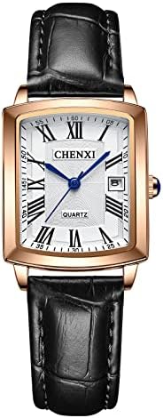 JewelryWe Women Watches Square Analog Big Roman Numerals Quartz Calendar Watch Business Casual Leather Wristwatch