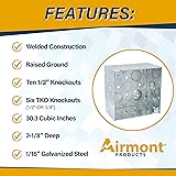 - Airmont Products' electrical boxes and covers are crafted from top-quality materials and are sure to provide long-lasting durability. This listing is of a square box and does not include an electrical box cover. This surface mount electrical box is a great wall box and can conveniently be used as a conduit box or metal junction box. Great for use as an electrical enclosure, this metal electrical box is 2-1/8 inches deep, which is a great advantage over a shallow electrical box. This junction box metal truly stands out among other electrical outlet boxes. Also available are junction electrical box cover with the metal outlet box. Square boxes and remodel electrical boxes often need and electric box cover as well. The electrical outlet box is crafted using the welded method. Our junction box covers are available in many different model sizes and styles. This electrical junction box with cover is great for use as an electric outlet box, drywall electrical box, or for any other electrical enclosures.