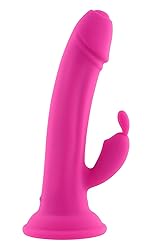 Realistic rabbit vibe with suction cup base 9-speed chunky bunny ear stimulator 9-speed realistically textured shaft & head 2 motors controlled together 1-button control panel Powerful suction cup base for hands-free play Made from creamy smooth silicone Height: 7.75", Depth: 2.81", Width: 2.79" Insertable Length 5“, Insertable diameter 1.49“ Weight: .5 lb. Waterproof & submersible Phthalate & latex free Magnetic rechargeable, USB cable included