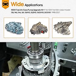 WIDE APPLICATION - this 10001 Transfer Case Pump Upgrade Kit fits for GM transfer case model 136, 146, 246, 261, 261HD, 263HD, 263XHD, 261XHD, year 1998-2007 STABLE PERFOEMANCE - designed to upgrade your transfer case, completely preventing the ever increasing problem of pump rub and catastrophic transfer case fluid loss. So that you could avoid costly repairs to your transfer case DURABLE MATERIAL - made of Aluminum alloy, asbestos, sealant and thread fixing glue, for good sealing, great hardness, corrosion and wearing resistance, strong durability and high reliability COMPLETE ASSEMBLY -includes transfer case pump housing, Transfer case adapter gasket at trans, RTV Silicone, Blue Threadlock. PUMP and TRANSFER CASE ARE NOT INCLUDED BUILT TO LAST - professionally manufactured to OEM specification, every part is carefully selected & tested to provide great reliability in function, performance and quality. Durable & affordable Pump Upgrade Kit to quickly repair your Transfer Case