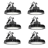 Unbeatable Illumination: The 200W superior and powerful high bay light provides industry-leading lighting! It features commercial grade, 29000 lumens and a brightness of up to 145 lumens per watt, making this light the best choice for wide and clear illumination! And the high bay light is compatible with reflector(Not included) provides 20% more brightness. Selectable Power & CCT: Hyperlite LED high bay light offers 9 customizable options in 1 fixture, allowing you to easily adjust wattage (200W/150W/100W) and color temperature (4000K/5000K/6000K) during installation. This eliminates the guesswork of choosing the right industrial fixture, making it simple to create a tailored lighting solution for any space. Perfect for warehouses, workshops, factories, garages, barns, and other industrial or commercial settings, this adjustable ufo high bay adapts Fast Installation: 3 minutes easy installation, saving you the hassle and frustration of hard installations. The package comes with a free American hook, 5 foot power cord, and Safety Rope to make installing this light even easier! It also features a 110V standard American plug for direct power supply. This will save you time and energy working on other projects! Solid & Durable: This stunning UL certified lamp is IP65 rated waterproof and dustproof. The durable housing makes it the toughest and most versatile light fixture on the market. Pure aluminum cold-forged design provides excellent thermal transfer, extending component life and preventing damage. It’s operation temperature is -22 to 113 °F. Beautiful & Unique Design: The lightweight, low profile and round/UFO-shape design makes this high bay light the most unique and beautiful product on the market. In addition to all of the beautiful features of these lights, it’s also dimmable!