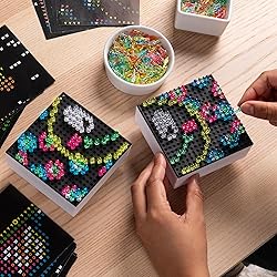 16 Design Templates: The Lite-Brite Mini-X Connect comes with 16 design templates. Use the templates to assemble your art or get creative and design your own! 340 Mini Pegs: Each Lite-Brite Mini-X Connect comes with 170 colorful mini-pegs. Insert the pegs into the screen, then light it up for a fun, beautiful display of your masterpiece! Exclusive 2 Pack: This set - available exclusively on Amazon.com - comes with two Lite-Brite Mini-X Connects for even more fun! Create And Connect: Each Mini-X Connect can connect to another through a latch on the back that allows for larger and more complex art designs. Tap To Light Up: Press the pegs on the front of your Lite-Brite Mini-X Connect to light up your art for a dazzling display!
