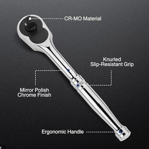 - Ergonomic Handle: Equipped with an ergonomic handle design that helps reduce hand fatigue and slippage with long-time work. And the knurled handle ensures you'll be able to keep a tight grip on this ratchet during use
