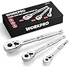 - 72-Tooth five Degree to Adjust: The WORKPRO ratchet has a reversible 72-tooth gear, operating with just a five-degree swing arc while maintaining maximum torque. It allows for quick socket changes even in tight spaces, and the quick-release button makes one-handed socket changes possible and easy