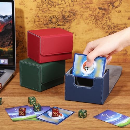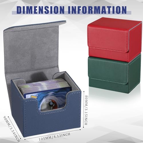Weewooday 3 Pieces Leather Deck Card Boxes Game Box for 100 Plus Cards Playing Magnetic Storage Box Compatible with Mtg Tcg(Blue, Red, Green,Horizontal)