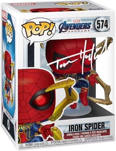 Tom Holland Spiderman Iron Spider #574 Facsimile Firmado Reprint Laser Autographado Funko POP! Movies Marvel Endgame Figurina con Estuche Protector