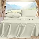 RV Sheet Sets 70x80 Camper King 4 Pc, 600 Thread Count 100% Egyptian Cotton Bed Sheets for RV, Campers & Travel Trailers, RV Bed Sheets Fit Mattress 10" to 15" Deep Fitted RV Sheets Ivory