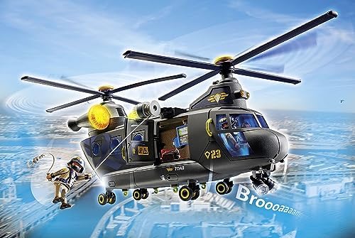 ¡Cuando el Equipo SWAT necesita mover mucho cargamento o miembros del equipo, confían en el Avión de Rescate! Dos rotores con luces y sonido funcionales hacen un trabajo rápido de cualquier carga pesada. La grúa funcional y las cadenas debajo pueden levantar incluso la carga más pesada. El set incluye helicóptero de avión de rescate, dos figuras, grúa funcional, sistema de correas de sujeción y luces y sonido funcionales. Recomendado para edades de cuatro a diez años. Advertencia. Riesgo de asfixia. Piezas pequeñas. No para niños menores de 3 años. Requiere 2x pilas AAA.