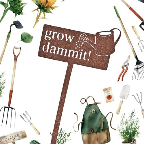 - Scope of delivery: One metal garden stake "grow dammit!" in a rustic look. 17" x 8.66" (Sold without additional decorations).