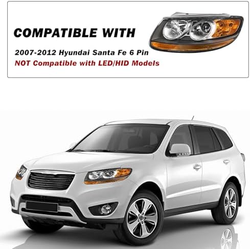 - FITMENT: Headlights Assembly Compatible With 07-12 Hyundai Santa FE. Bulb is not included. High beam bulb type: H7; Low beam bulb type: H7. OEM Part Number: 921010W060,921020W060; Partslink Number: HY2502150,HY2503150.