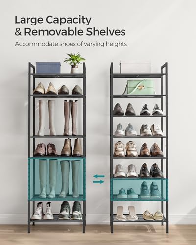 - [Small Area, Large Capacity] This SONGMICS tall shoe rack has the perfect compact size for a small space. At just 1.47 sq. ft, it can hold 16-24 pairs of shoes, and even can be as a storage shelf for bags and toys