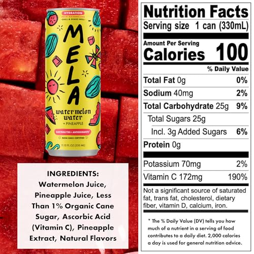 Mela Water Natural Watermelon Juice Drink, Electrolytes & Antioxidants, Natural Hydration, Coconut Water Alternative, Vitamin C, No Added Sugar, Pineapple (16.9 floz (Pack of 12))