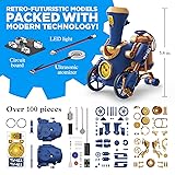 Build your own funky, steampunk-themed robots that use an ultrasonic atomizer to emit a safe, cool steam that mimics a real-life locomotive. Two robots to choose from: a rolling train or a walking robot; move a few pieces to go back and forth between each configuration quickly and with ease. An LED light illuminates the water vapor for a dazzling steam engine effect. Includes an electric motor, circuit board, and ultrasonic atomizer that helps teach kids about ultrasonic and sound waves as well as phases of matter. The 44-page, full-color manual includes a fun, comic-book-style story that adds to the play value of the kit and brings the models to life. A 2023 Vehicle of the Year Award Finalist, presented by The Toy Foundation Featured in Purdue University’s 2023 INSPIRE Engineering Gift Guide
