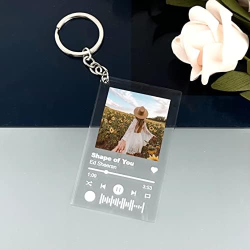 Custom Acrylic Spotify Code Music Keychain Personalized Women Men Photo Album Cover Song Art Player Name Date Birthday Gifts Transparent
