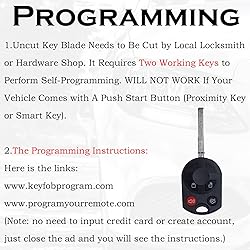 HIGH-QUALITY: Every Single Keyless Entry Remote Control Car Flip Key Fob is Fully Pre-tested by Professional Locksmith Tools before Shipping. All Our Key Fobs are Pre-installed with Battery and Electronics. COMPATIBILITY: Compatible with FCC ID OUCD6000022. Please Check Our Product Description and Vehicle Fitment Tool for Full Compatible Vehicles List. This Remote Key Fob Replacement Is Compatible with Ford C-MAX Escape 2013-2019 Focus 2012-2019 Fiesta 2015-2018 Transit 2014-2018 Transit Connect 2014-2018 REPLACEMENT: This Keyless Entry Remote Control Car Key Fob Replacement Is Compatible with Part Numbers: 164-R8046, 5921709 PROGRAMMING: Self-Programming Instructions Link Will Be Provided with Every Order. Uncut Key Blade Needs to Be Cut by Local Locksmith or Hardware Shop. It Requires Two Working Keys to Perform Self-Programming. WILL NOT WORK If Your Vehicle Comes with A Push Start Button (Proximity Key or Smart Key). PACKING LIST: 1 X Keyless Entry Remote Control Key Fob with Electronics and Battery Pre-Installed. Ready to Program.