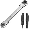 - [SIZE AND DIMENSION] - The refrigeration wrench features a range of four square drive sizes, including 3/16-inch, 1/4-inch, 5/16-inch, and 3/8-inch options, ensuring compatibility with a wide variety of applications. The wrench also comes equipped with a 1/4-inch square bit adapter, which features both 3/16-inch and 5/16-inch hexagon ends for added versatility and convenience.