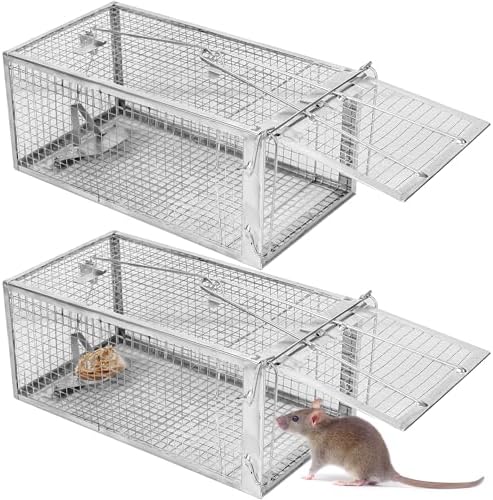 2-Pack Humane Rat Traps, Live Mouse Rat Cage Traps Catch and Release for Indoor Outdoor, Small Animals Traps, Easy to use,(10.6"x 5.5"x 4.5")