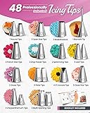 Essential Cake Decorating Tools: Getting ready to decorate but not sure what tools you need? RFAQK offers complete baking supplies set that includes everything you need to start decorating Cakes like a PRO! 48 Numbered Easy to Use icing tips with E-Book in PDF (User Guide for beginners) & Booklet showing outcome of each Icing Nozzle, 2 Coupler, 20 disposable icing bags, 1 Reusable pastry bag, 1 Flower nail & lifter, Cleaning brush, Storage box that keeps everything organized Professionally Selected Premium Icing Tips: RFAQK has put together a fantastic collection of 48 cake decorating tips, made up of 304 Stainless Steel. These tips come in various styles, like round, leaf, petal, French, basket weave, open star, closed star, and drop flower tips. Each type of tip allows you to create different and beautiful designs on your cakes. With these tips, you can elevate your cake decorating skills and amaze your loved ones with your creations Numbered Tips for Beginners : Are you a beginner who has just started to Learn how to decorate cakes? Or an expert who wants to bake a fantastic mouth-watering masterpieces? Then, this is the best choice for you! This is the only set having numbered tips with pattern chart booklet. So you don’t have to worry about which tips produce what kind of decoration, just have a look on pattern chart where we have provided outcome of each tip to make tip selection very easy An Ideal Baking Gift for Every Occasion: This icing bags and tips set is the perfect choice for decorating cakes on various special occasions, such as birthdays, Mother's Day, weddings, Christmas, Easter, housewarmings, anniversaries, and more We are always Here For You - 100% Customer Satisfaction: Our quality products speak volumes, and it gets even better with our extra mile approach to always assure 100% Customer Satisfaction. Still, if anything falls short of your expectation, we solve it within 24hrs, no matter what