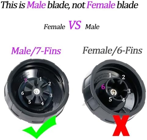 [New Model] Replacement 7 Fins Male Blade&24oz Blender Cups Compatible For Nutri Ninja Auto iQ Blender [4 Inch Male 7 Fins Blade]