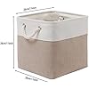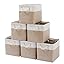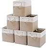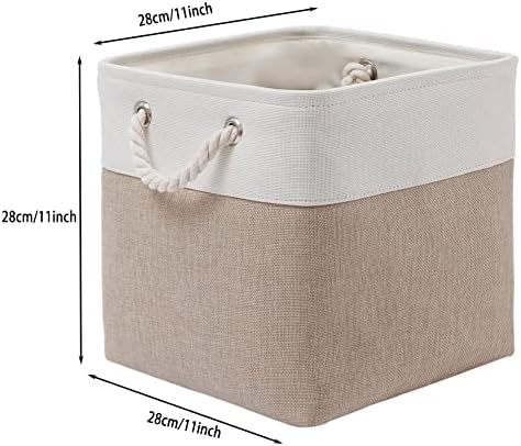 11 x 11 Inch Cube Storage Bins, 6 Pack Large Collapsible Fabric Storage Bin with Ropes, Foldable Storage Cubes for Home, Office,Closet, Clothes, Toys Organizer (White & Beige-11"x11"x11")