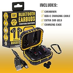 CAT Bluetooth Noise Canceling Ear Buds - Rugged Wireless Work Earbuds, Bluetooth Work Headphones, Dust Proof, Shock Proof, Water Resistant, Compatible with Apple, Android
