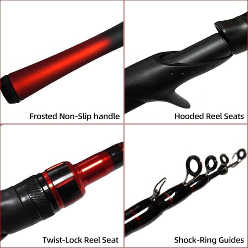- EASY TO USE: Kilitn Baitcast reel and fishing rod combo features 5 foot lengths, high quality durable fiberglass telescopic rod and Baitcast reel. The rod comes in a red black color provides a medium fast action and L power, making it ideal for catching medium and heavy species from walleye to bass, catfish, striper and more.