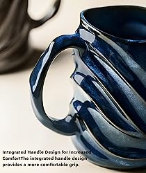 17oz Embossed Face Shape Large-Capacity Ceramic Coffee Mug - Unique Handmade Tea Cup for Office and Home - Microwave and Dishwasher Safe (Blue)