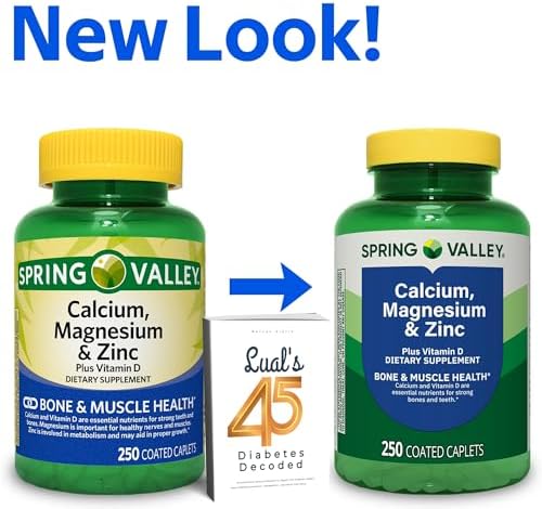 Calcio, Magnesio, Zinco y Vitamina D3. Suplemento Dietético de Calcio Magnesio con Vitamina D3 Plus de Spring Valley, Paquete de 250 Unidades con Luall's 45 Diabetes Decoded