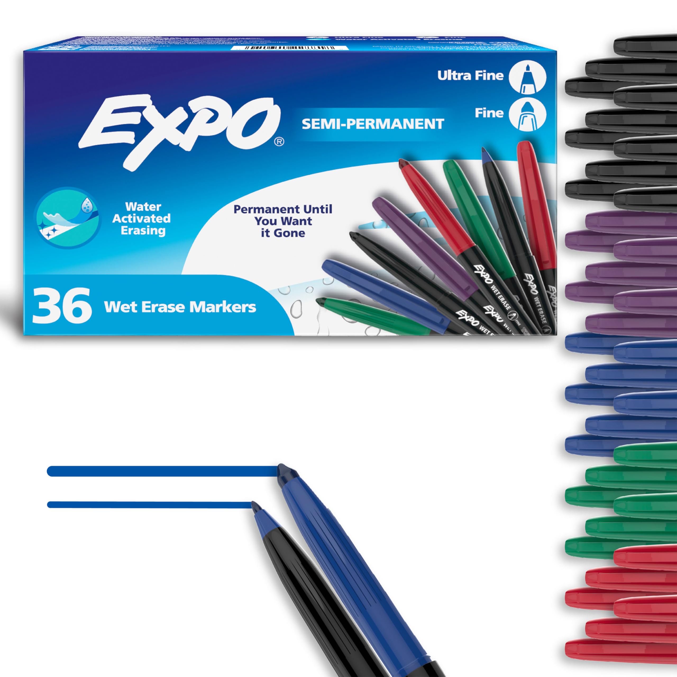 - Chisel Tip Assorted Color Markers: Chisel tip dry erase markers set of assorted colors including 36 piece of 4 colors marker pens: 9 black & 9 blue & 9 red & 9 green. Bold color highly visible even in long-distance, perfect for office classroom work on white board, calendar