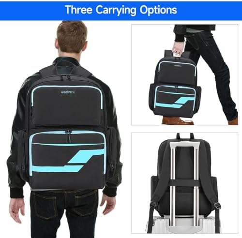 Deegotech Carrying Case Compatible with PS5/PS5 Pro/PS5 Slim, Protective Travel Backpack Compatible with Playstation 5 Console Travel Case with Multiple Pockets Fit Accessories/Disc/Laptop, Black&Blue