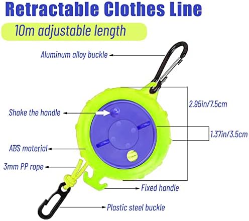 - 💕【Portable & Easy to Carryγ】The portable clothesline is the size of a pocket, light weight, convenient to store AND SPACE SAVING. Retractable clotheslines can be easily carried in a clothespin bag, held in the hand, and hung from a backpack. Ideal for travel, camping, cruising, hiking, outdoor and indoor use. A clothesline cord is an ideal gift for a camper accessory.