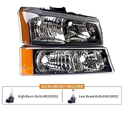 Vehicle Fitment: Fit 2003 2004 2005 2006 Chevy Silverado 1500/ 1500HD/ 2500 /2500HD; 2004-2006 Chevy Silverado 3500 NOTE: Do Not Fit 2003 Chevy Silverado 3500 HD & Stepside Beds Model. Not Fit Chevy Avalanche!!! Package Include: 1 x pair of Headlight Assembly(Bulb not Include); 1x pair Tail light Assembly (Bulb and wiring Harness Include) Weather-sealed: the fully sealed structure with solid silicon prevents moisture from being trapped inside the housing & provides reliable service in sorts of weather conditions such as rain, snow or dust storms Easy Installation: Bolt-on design for easy plug-n-play installation and no need to modify the vehicle for installations